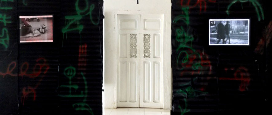 Instalación; cartón, pintura aerosol, fotografías montadas en cajas de luz y proyección audiovisual